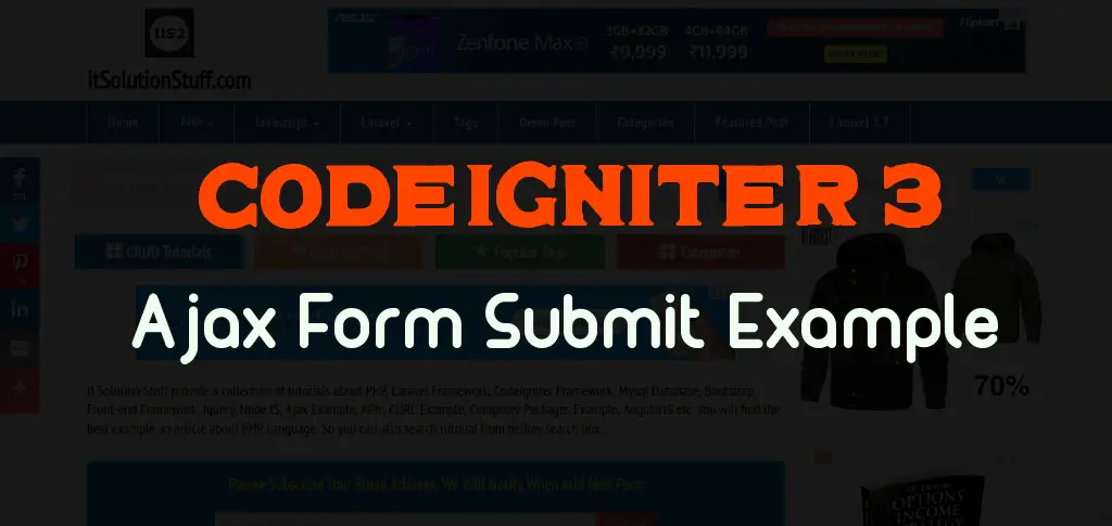 In this tutorial, i will show you how submit form using jquery ajax without page refresh in codeigniter 3. i will write simple example of submit form using jquery ajax in codeigniter 3 website.