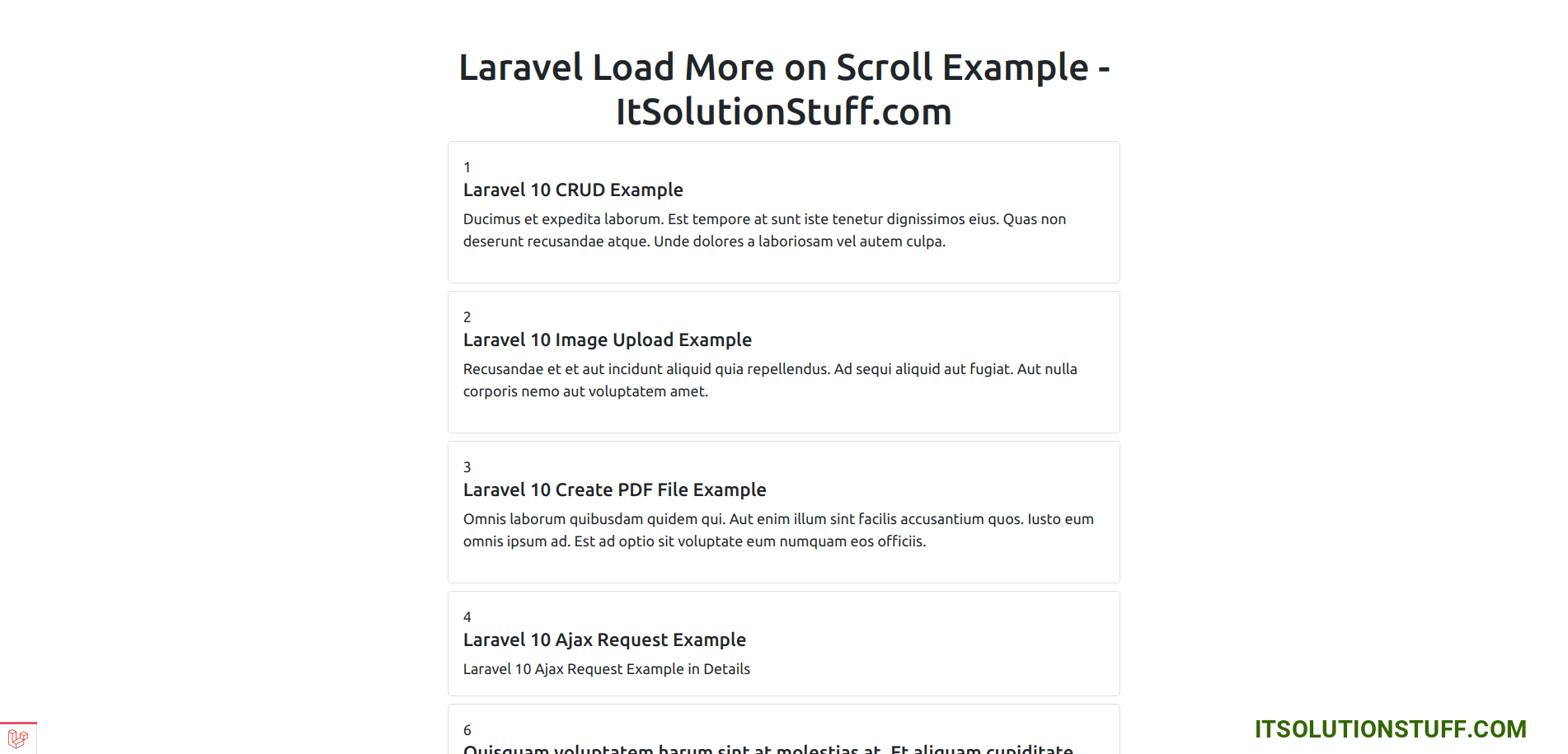 <h1>Laravel Load More on Scroll Example - ItSolutionStuff.com</h1>