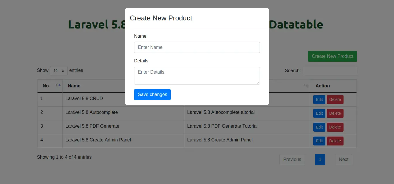 Laravel 5.8 Ajax CRUD tutorial using Datatable JS